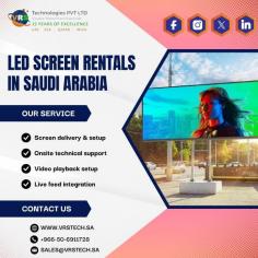 Make your event unforgettable with VRS Technologies, offering LED Screen Rentals in Saudi Arabia for both indoor and outdoor events. We provide high-quality displays, seamless setup, and technical support. Call +966-50-6911728 for reliable LED screen rental solutions today.