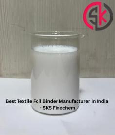 Looking for a reliable Textile Foil Binder Manufacturer in India? SKS Finechem Pvt. Ltd. offers high-quality foil binders specially formulated for excellent adhesion, smooth finish & long-lasting performance in textile printing & foil applications. Our binders ensure superior bonding, vibrant results & consistent quality for fabrics & fashion textiles. Trusted by textile manufacturers across India, SKS Finechem delivers performance-driven solutions backed by strict quality control and industry expertise.