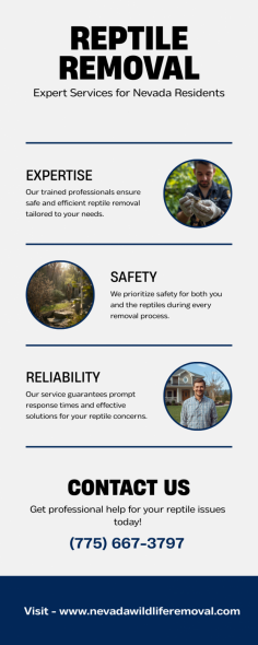 Need reptiles removal services in Nevada? Nevada Wildlife Removal offers safe, humane solutions for residential and commercial properties. Call at (775) 667-3797.