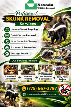 Dealing with unwanted skunks on your property? Nevada Wildlife Removal provides safe, humane, and effective skunk removal services to protect your home and yard. From odor control to secure removal and prevention, our team handles the problem quickly and responsibly. Call (775) 667-3797 for expert assistance.