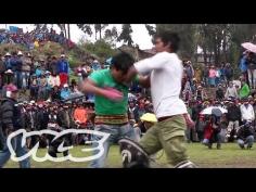 The festival is called Takanakuy, and it's equal parts sporting event, indigenous display of hypermasculine defiance in the face of all the lily-white metropolitan sissies in Lima, and makeshift judicial system. The province of Chumbivilcas, where Takanakuy takes place, has about three cops total and is a stomach-wrecking 10-hour drive through the mountains to the nearest courthouse. So if you've got a beef with a neighbor or someone's taken your girl or your sheep, you don't go crying about it to some judge. You bury it away until Christmas, then get yourself all beered up and exact some Andean justice with your fists and feet. Guys, girls, little kids, old drunk men in high-waisted pants; everybody in town fights at Takanakuy.