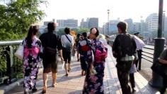 Today is Thursday July 25, 2013. The Tenjin Matsuri (festival) is a big event here in central Osaka and it takes place in my neighborhood. I was so excited to see all the people wearing their yukata and enjoying the festivities. It is unbelievably hot here in Japan during this time of year and just walking around requires a lot of energy.