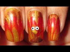 My actual Thanksgiving Day manicure =) Figures that the nail I recorded turned out to be the messiest turkey LOL.