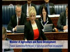 The Minister of Agriculture & Rural Development in the 6 County Executive Sinn Féin MLA Michelle O'Neill challenges the British MOD over their £600,000 bill for the use of helicopters to bring much needed supplies and help to stranded farmers and isolated communities during the severe snow storms at the start of the year. The Irish Air Corp who also supplied helicopters have waived payment. Minister O'Neill also answered questions on EU funding and her recent trip to China.