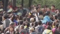 A major tourist jam at the Jiuzhaigou scenic spot in southwest China's Sichuan Province saw more than 40,000 people arrive on Wednesday, many struggling to get on a fleet of buses far less than needed. Many visitors who contended with long snaking queues were left stranded outside for hours. Authorities expect tourist destinations to remain especially busy during China's National Day holiday. Report by Ashley Fudge.