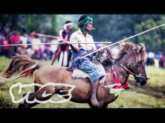 Sumba is an island the size of Jamaica in the Indonesian archipelago that has been cut off from the rest of the world for so long that its ancient animistic traditions survive to this day. It is the setting for ritual battles called Pasola which take place every year in February and March. The Pasola is a fight between rival clans who hurl spears at each other on horseback in order to "fertilize" the soil with spilled human blood.