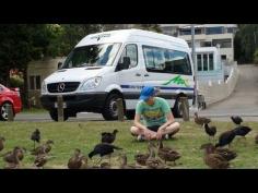 On day 5 we went to the launch of another New Zealand tour, met a dinosaur and hung out with pūkeko and ducks by a lake.