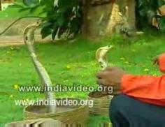 Perfomance of a snake charmer. Snake charmers are entertainers who used to have a living by playing with posionous snakes like cobra. They are like street magicians in Kerala. For more information on this video click - http://www.indiavideo.org/kerala/land-and-people/lifestyle/a-different-play-mate-316.php#Desc