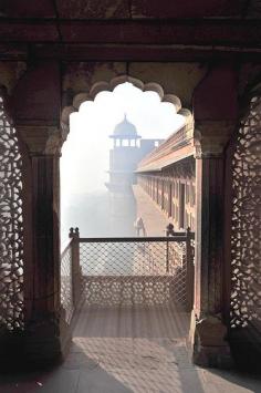 Agra, India. Magic early morning light and fog at the Red Fort...