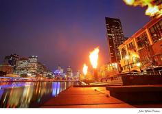 Gas powered flames on the edge of the Yarra River. South Bank. Melbourne. Victoria. Australia