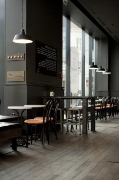 This cafe looks very modernized with it's more modern looking feel, colour, and furniture. The amount of natural light also helps add to the modern look.