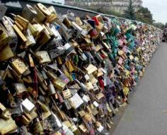 The lock bridge- Paris, France Couples from all over France go to this bridge and they put a lock on the bridge and throw the key into the river.