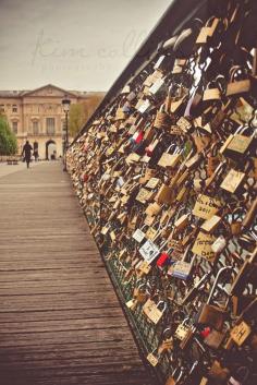 Love-Locks Bridge, Paris, France. Couples that have found the loves of their lives take a lock, lock it on the fence, and throw the key in the river.