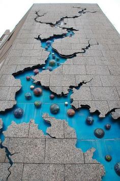 The art meant to portray the snake river in Boise Idaho. It lights up along the edges and mists during the summer! :) grew up around that thing!