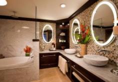 Gorgeous restroom with Custom double sink and mirror vanity with jacuzzi tub, and shower, and plenty storage during your stay.