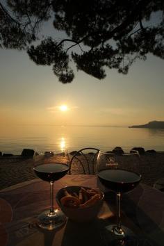 sunset and red wine, pinch me I must be dreaming