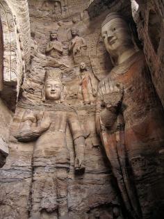 Stone carved Buddhas at Yungang Grottoes in Datong, China (by Around the World in 480 Days).