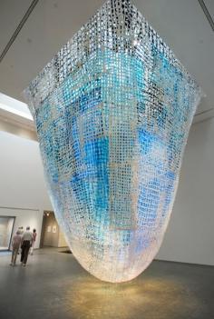 Anna Hepler: Pictured here is The Great Haul made from sewn sheet plastic and tarps hanging 22 feet from the clerestory. It looks like glass, but it