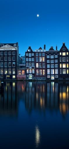 Moon over the River Amstel in Amsterdam, Netherlands • photo: Artem Savateev.