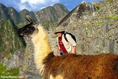 David tries to sweet talk a llama out of our way at Machu Picchu! See more: www.gypsynester.c... #travel #peru #nature
