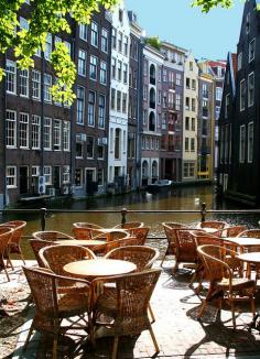 Amsterdam canal cafe seats, Nederlands