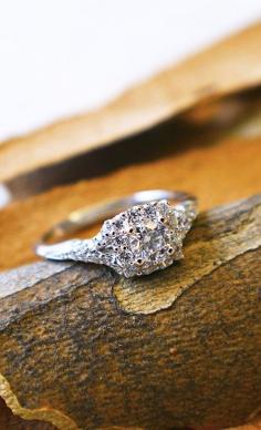 14k White Gold Contemporary Halo Engagement Ring