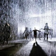 Rain Room in London. Rain falls in every spot except for the spot you are standing in.