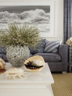 Clifford Ross' photograph of breaking waves against a blue and white fabric by John Robshaw serve as perfect updates to Estee's old sitting room. Photo Credit: Simon Upton. "Beauty At Home" Random House.