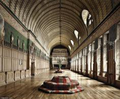 A room from the Chateau de Pierrefonds in Oise, France, north of Paris; it later became a filming location for the 1998 film Man In The Iron Mask