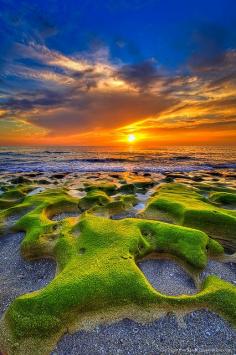Emerald Green, Moss Covered Rocks, Jupiter Beach, During Sunrise, by Captain Kimo, on Flickr.