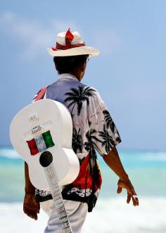 Músicos que nos dan un momento de relajación en las playas de Playa del Carmen, Mexico