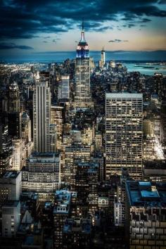 New York City at dusk, United States.