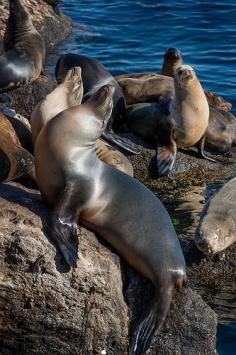 Basking sea lions near Monterey Wharf