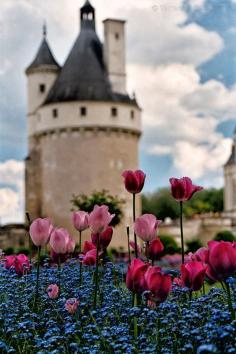 Castle & Tulips, Chateau de Chenonceau in Indre-et-Loire, France | La Beℓℓe ℳystère