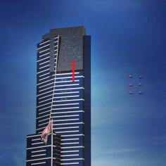The RAAF Roulettes flying near Eureka Tower for the