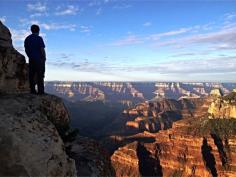 Absolutely amazing place to watch the sunrise. The north rim sits at a higher vantage point at an average elevation of 8000 feet, in a sub-alpine climate of blue spruce, Douglas fir, mountain ash, colorful lupines and grassland meadows. Surrounded by trees, greenery, colorful rock walls, breath taking! The north rim is more remote and I was told by a ranger that only 5% of the parks visitors come here. Beautiful lodge, fantastic campground... Discovered by Channing :) at North Rim, Arizona