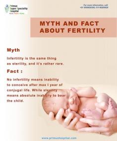 Myth : Infertility is the same thing as sterility, and it’s rather rare. No infertility means inability to conceive after max I year of conjugal life. While sterility means absolute inability to bear the child.