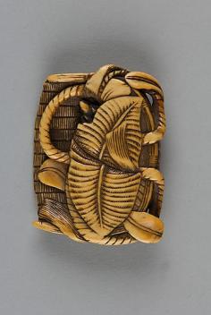 Netsuke of Flat Basket Containing Leaves and a Mouse, 19th century, Japan