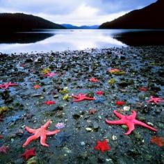 The colony of sea stars, West Coast, New Zealand.