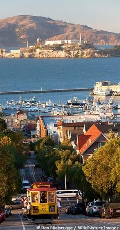 Cable car and Alcatraz Island in San Francisco, California • photo: Ron Niebrugge / WildNatureImages