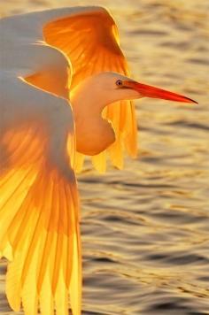 Twitter, Great Egret in flight at sunset, such a beautiful bird by Graham Owen pic.twitter.com/dlwEdATi4z