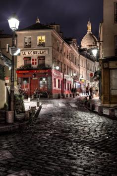 Le Consulat, Sacre Cuore dome, Paris by night. - W Brian Duncan