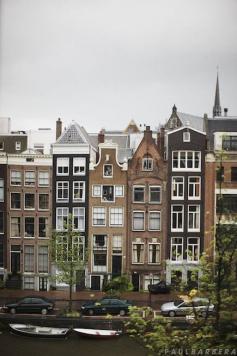 Amsterdam tall and skinny buildings, because you used to pay tax according to the width of your house