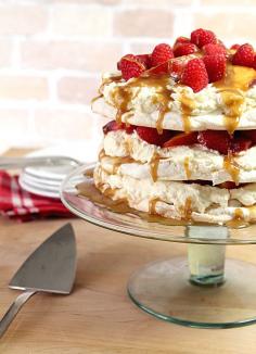 Peach Melba Pavlova with Bourbon Caramel Sauxe | SAVEUR ᘡղbᘠ