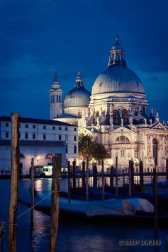 The Church of Santa Maria della Salute at night in Venice, Italy