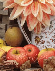 From Sharon Santoni (My French Country Home): recipe for the traditional french apple tart, served upside down and called the tarte tatin!