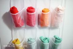 Martha Stewart Closet System by A Bowl Full of Lemons 7. tee shirts? towels? organized like a color wheel.