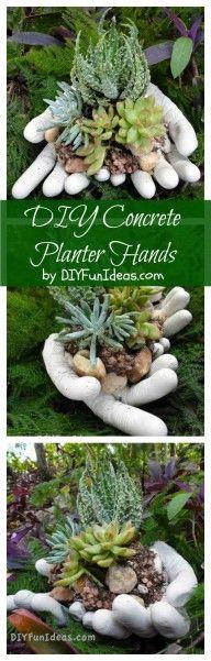 DIY concrete planter hands