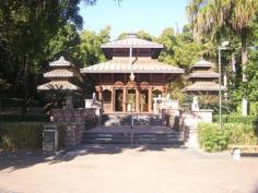 Southbank Precinct, Brisbane, Queensland, Australia. The Nepal Peace Pagoda was originally located on the Expo site and was moved to its new South Bank Parklands riverfront location at the conclusion of the Expo after a successful government and private fundraising campaign to keep the Pagoda in Brisbane. With its traditional architecture, art work and first level meditation area, it is a popular attraction.