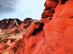 Valley of Fire is about 50 miles NW of Las Vegas, and has extremely spectacular red sandstone rock formations, as well as petroglyphs. We were there in early April, and it lived up to it's name! Hot!